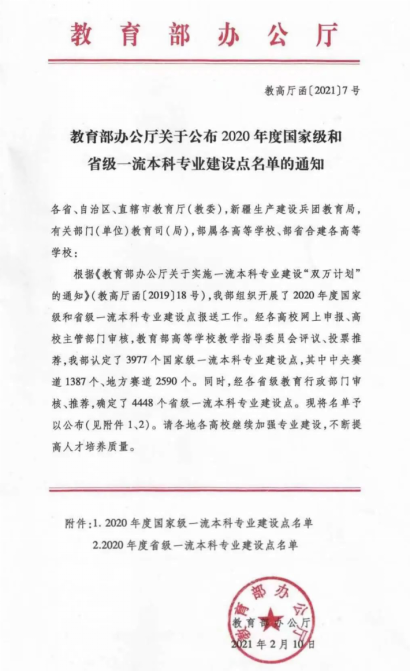 近日,《教育部办公厅关于公布2020年度国家级和省级一流本科专业建设点名单的通知》(教高厅函[2021] 7 号)发布,四川传媒学院数字媒体与创意设计学院数字媒体艺术专业获批2020年度国家级一流本科专业建设点。