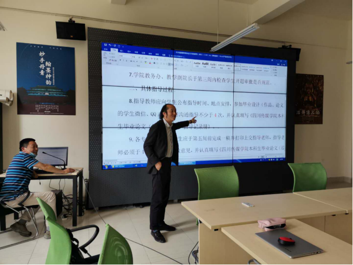 学生返校是进一步完善毕业论文(设计、作品)的一大良机,全院老师们都抓住这一良机对学生进行最后的指导,帮助学生进行最后的冲刺。从30日开始,数媒学院迎来疫情以后最热闹的时候,老师们和同学们如火如荼的进行着毕业论文(设计、作品)答辩前的准备工作。
