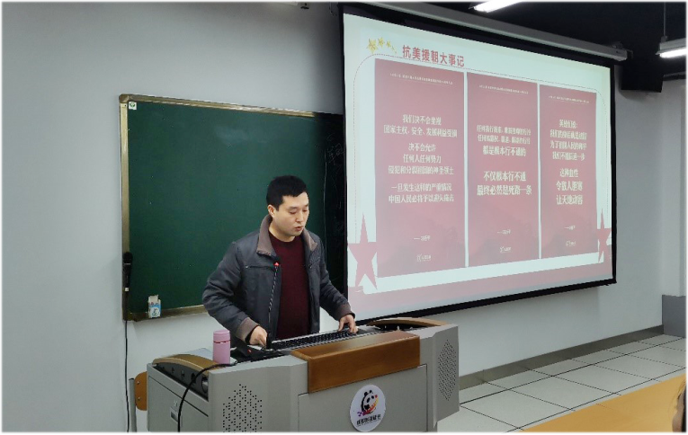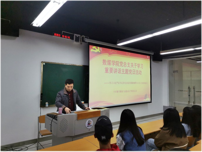 活动首先由数媒学院党总支副书记李朝林为2019级数字媒体技术本科01,02班、网络工程本科01班,广播电视工程本科01班开展了有关习近平总书记在纪念抗美援朝70周年大会上重要讲话的具体学习。强调要铭记抗美援朝战争的艰辛历程和伟大胜利,敢于斗争、善于斗争,知难而进、坚韧向前,把新时代中国特色社会主义伟大事业不断推向前进。