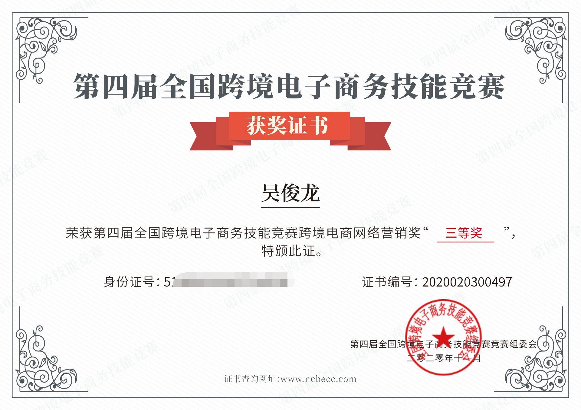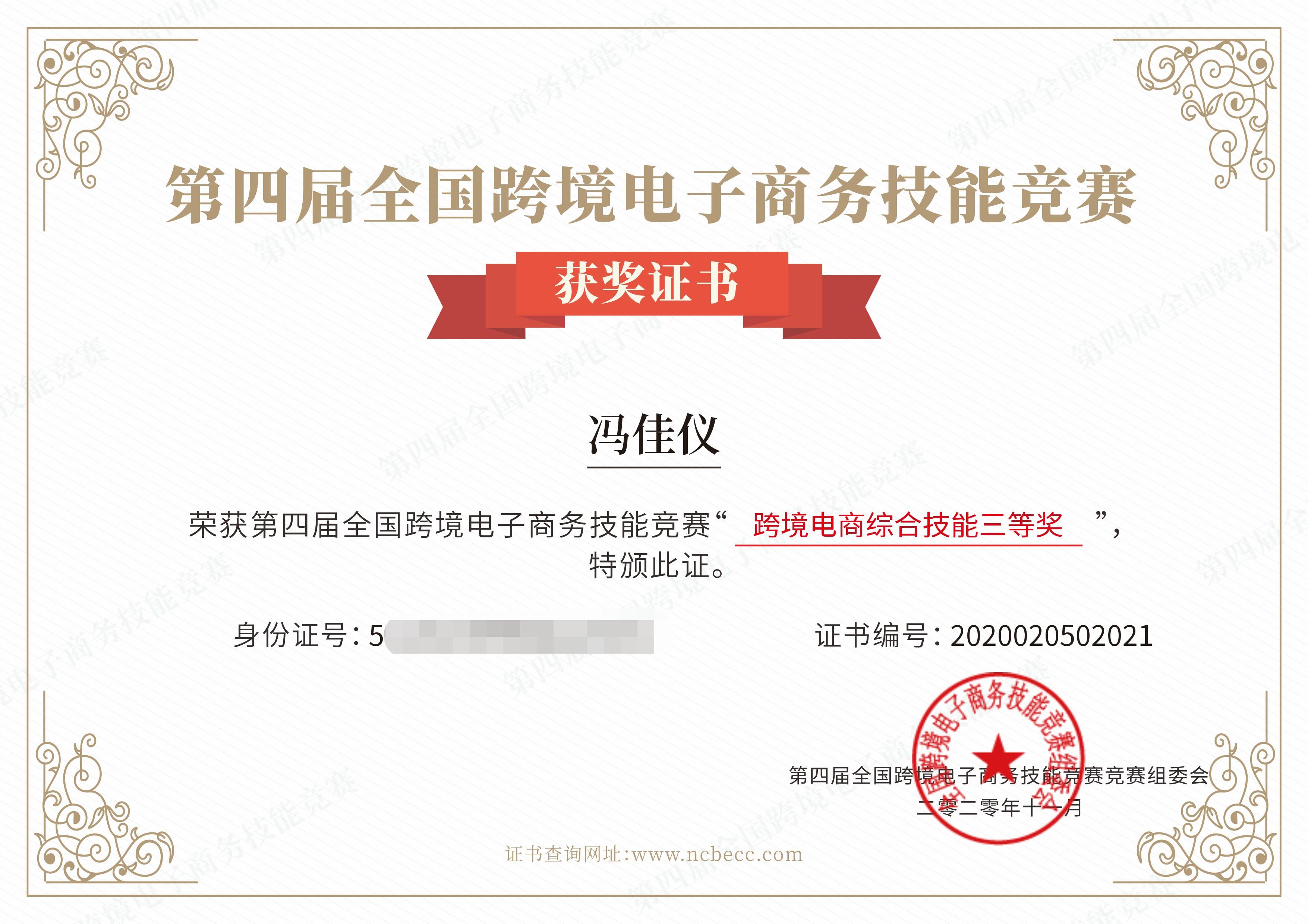 第四届全国跨境电子商务技能竞赛由中国对外贸易经济合作企业协会主办,中国对外贸易经济合作协会跨境电商工作委员会承办。大赛于2020年11月15日圆满结束,来自全国908所院校10599名选手参加竞赛,其中3734选手进入决赛。此次比赛四川传媒学院数媒学院电商专业本科组与高职组双双进入决赛!最终我院电商专业本科班付婷婷同学和赵运凡同学分别获得“跨境电商综合技能一等奖和三等奖”。