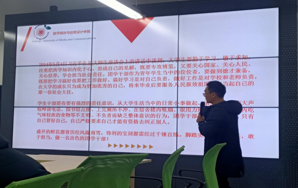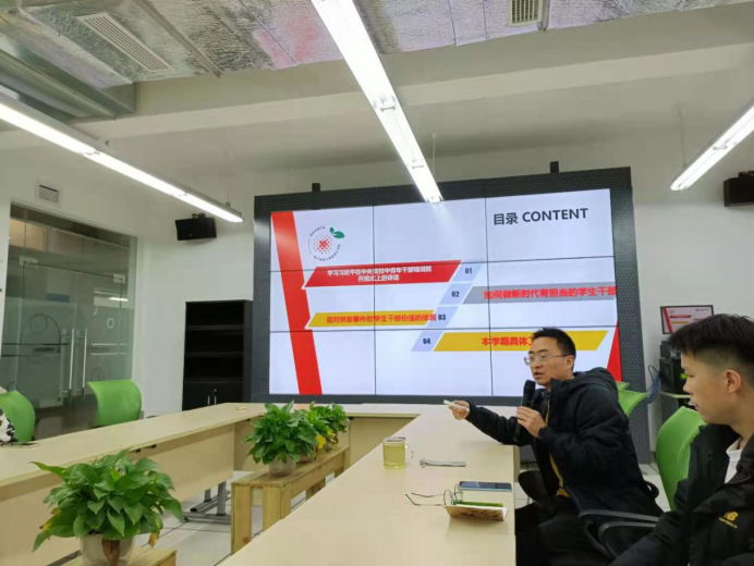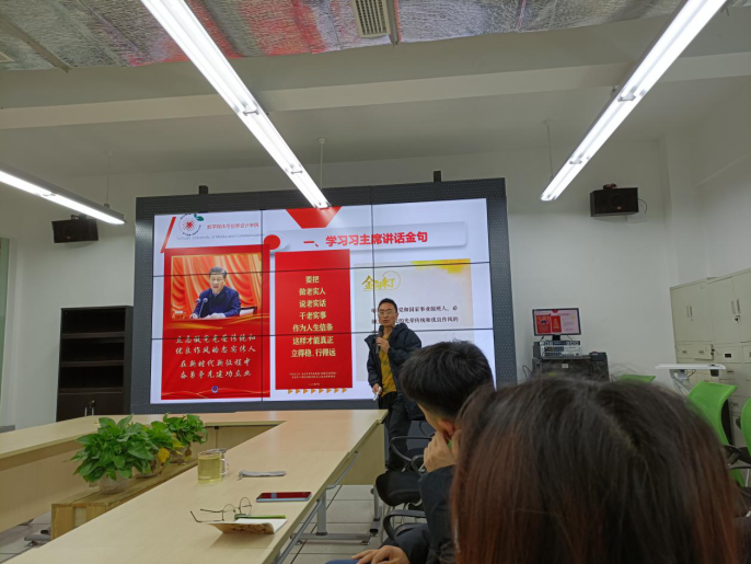 数媒学院党总支委员陈亮老师带领所有学生干部先学习了习近平总书记在中央党校中青年干部培训班开班式上的讲话,强调年轻干部是党和国家事业接班人,必须立志高远、对党忠诚、表里如一。要求所有学生干部一起以总书记讲话共勉学习:“要把做老实人说老实话,干老实事,作为人生信条,这样才能真正立得稳、行得远。年轻干部是党和国家事业接班人,必须立志做党的光荣传统和优良作风的忠实传人。”