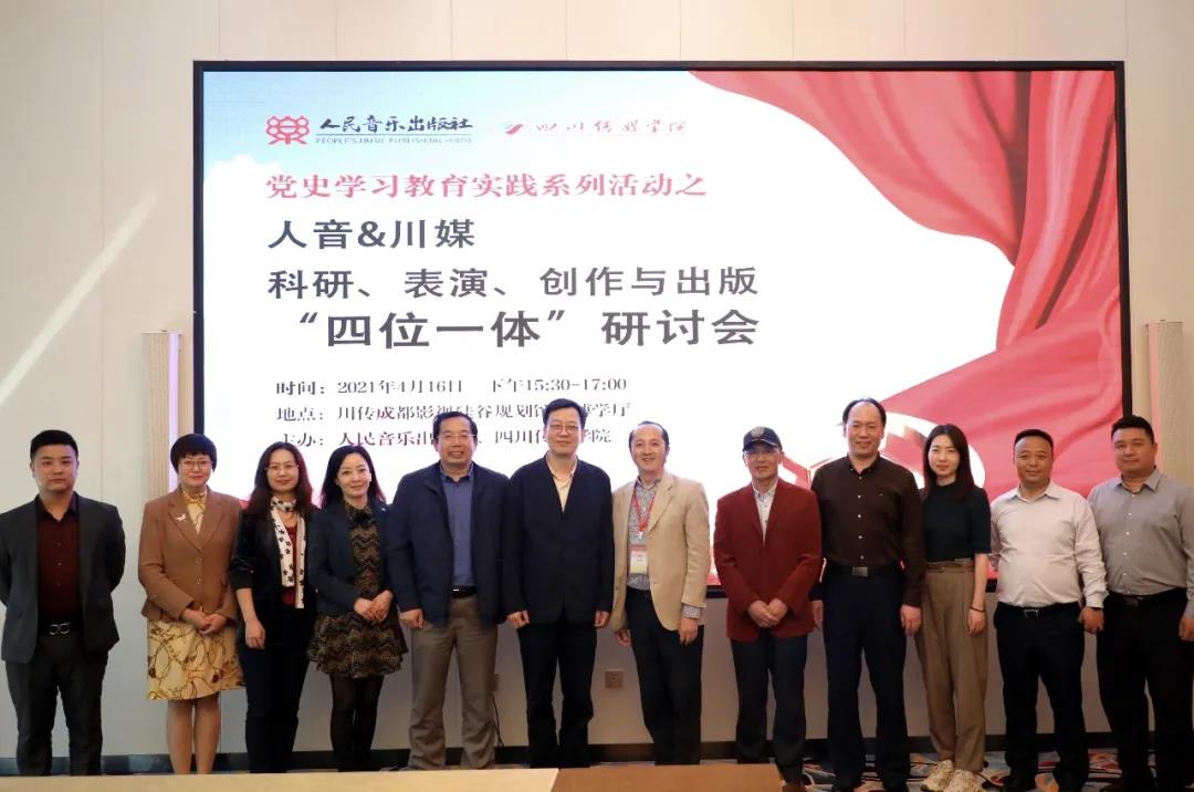 人民音乐出版社副总编辑赵易山,电子音像中心主任黄志鹏,总编室副主任李烨,上海分公司负责人周洲,电子音像中心编辑李鹰等一行来访成都影视硅谷进行参观交流。人民音乐出版社副总编辑赵易山,电子音像中心主任黄志鹏,总编室副主任李烨,上海分公司负责人周洲,电子音像中心编辑李鹰等一行来访成都影视硅谷进行参观交流。我院院长王家福教授、学术院长肖永亮教授等人参加研讨会,一同展开关于“科研、表演、创作与出版‘四位一体’研讨会”。