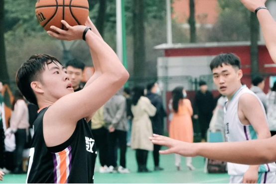 一声哨响,数媒学院和融媒学院的第一场比赛正式开始,数媒队员在球场上行动积极,邓文镇凭借出色的身高优势和强大的对抗能力拿下首个两分,为数媒球队起了一个好头。球员们一次次成功突破和完美的配合,比分渐渐扩大,数媒球队首战告捷!