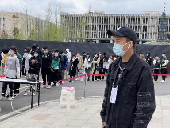 为了落实《成都市新冠疫情防控指挥部专业疫情防控组关于进一步加强新冠肺炎监测预警工作的通知》要求,提高部分重点行业和单位监测频次,在学校组织下,数媒学院积极响应,于3月22日在四川传媒学院西校区图书馆正门大道进行全员核酸检测。