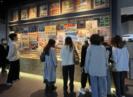 曾言老师和同学们一起参观来自70·80年代的电影画报,电影票,与学生交流电影的发展与变化。