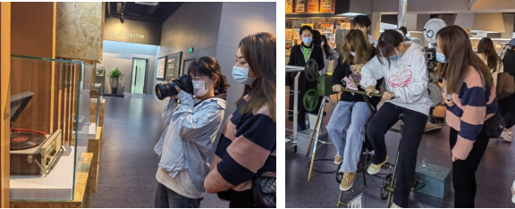 参观之余,张映雪老师指导同学正在用相机记录老式留声机和同学们一起亲身体验老式电影放映装置,穿越回靠人力播放电影的年代。