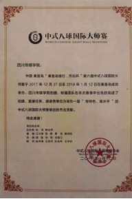 中式台球及《过年了》组委会感谢函