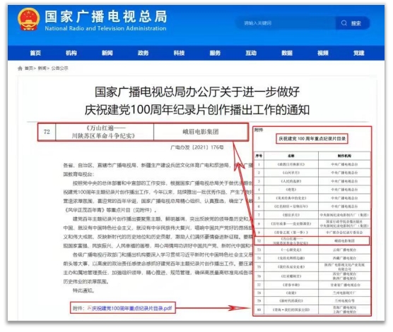 《万山红遍》入选国家广播电视总局“庆祝建党100周年重点纪录片。
