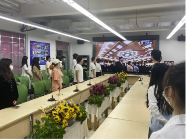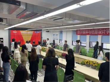 2022年5月10日上午10点,数字媒体与创意设计学院学生代表在A09-327开展了以“喜迎二十大,永远跟党走,奋进新征程”为主题的会议。会议期间,全体青年学生代表一起观看了在北京人民大会堂举行的庆祝中国共产主义青年团成立100周年大会的直播。