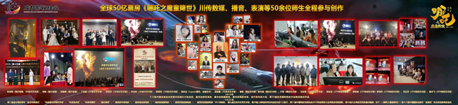 数媒学院共有120余名师生参与该片的美术设计、摄影、演出、后期特效制作等工作。其中参与指导的师生有向东、赵学泰老师(视效导演),张立伟老师(视效指导),白俊、陈晨老师(合成指导),张俊老师(三维指导),王大智、孙青杨老师(跟踪指导),章兵老师(数字绘景指导),黄丹红、李晓瑞老师(动效指导),曹禺尧老师(layout指导),庄栎燊老师(视效调光师),赵禹涵老师(三维制作艺术师),马建明、李海东、张明瑶、程梦君、张莉琴老师(渲染与IT支持)及100多位学生,具体名单如下。
