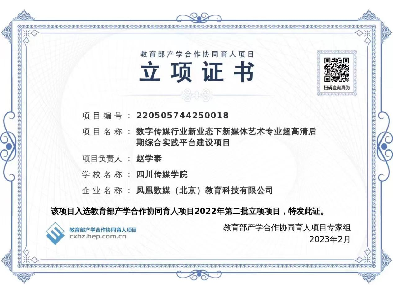 本次获准立项的两个项目分别为:马建明(负责人)、陶瑶、王露洁、毕然、张瑶、王家福、郭蒙等申报的“数字经济新业态下数字媒体教学内容和课程体系改革项目”,赵学泰(负责人)、向东、向骏之、李严、龚强、龙继祥、章兵、李海东等申报的“数字传媒行业新业态下新媒体艺术专业超高清后期综合实践平台建设项目”。