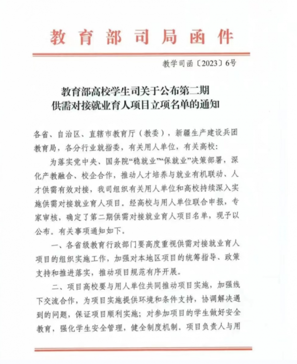 供需对接就业育人校企合作项目不仅有助于提升学生们的就业能力和水平,减轻他们的就业压力,更重要的是推动他们实现更加充分、高质量的就业。通过与企业的深入合作,学生们将能够亲身参与实际项目,与业界专业人士密切互动,从中获得宝贵的实践经验和技能提升。这种紧密的校企合作将有助于构建更加紧密的人才培养与就业对接机制,进一步促进高等教育与产业的有效融合。