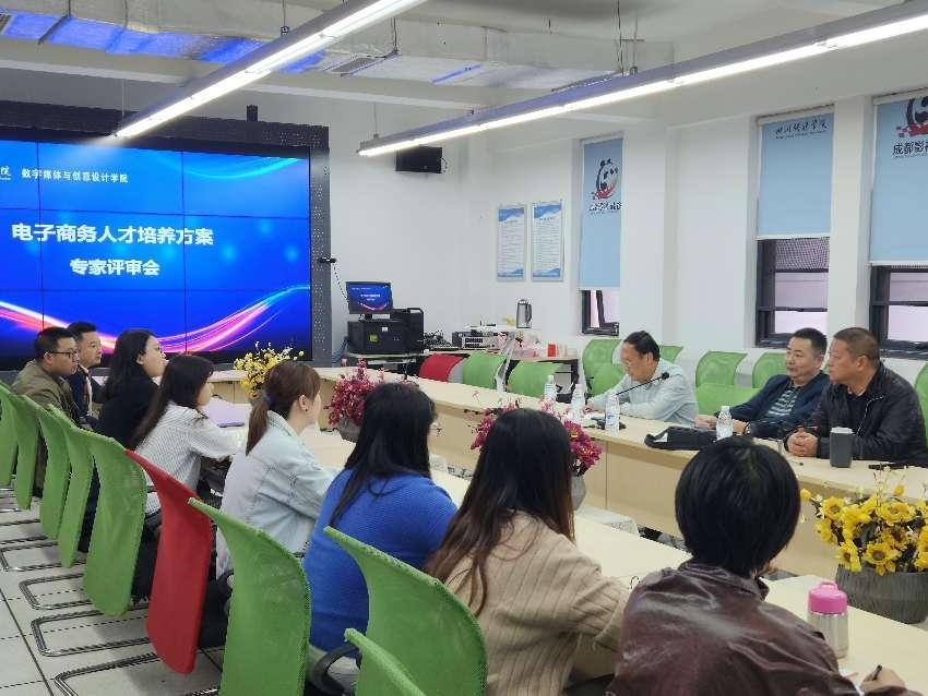 近日,四川传媒学院数媒学院在教学楼会议室A9-327举行了一场关于电子商务专业人才培养方案及教学大纲的评审会议。此次会议的目的是邀请行业专家共同探讨新时代下如何培养新一代电商精英的问题。参会人员除了数媒学院院长马建明教授、电子商务专业主任及相关教师外,还特邀了博士、教授、博士生导师,西南财经大学党委委员,数智商务与数实融合创新中心主任,教育部电子商务类专业教学指导委员会委员帅青红教授以及四川省电子商务协会常务副会长徐晔副会长。