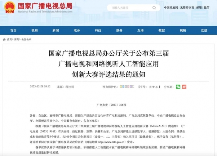 近日,国家广播电视总局办公厅关于公布“第三届广播电视和网络视听人工智能应用创新大赛”。