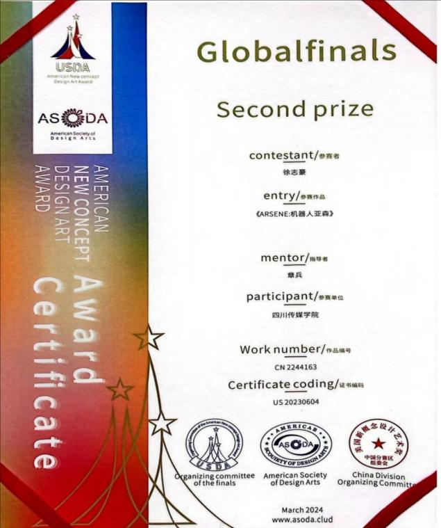(2023第二届USDA美国新概念设计艺术奖获奖证书)
