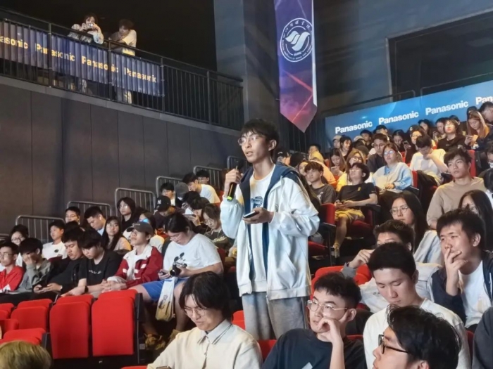 在分享会的互动环节,学生们纷纷向两位嘉宾提问,就特效短片创作中的技术难题、市场趋势等问题进行了深入交流。温訸和肖彤也耐心解答了大家的问题,并分享了自己的见解和建议。