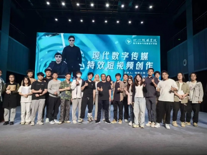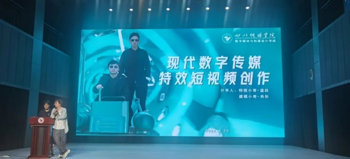 2024年4月15日,四川传媒学院数字媒体与创意设计学院迎来了一场别开生面的专题分享会。央视年度荣誉创作者、四川传媒学院数字媒体艺术专业的优秀毕业生"特效小哥——温訸、"建模小哥——肖彤,以“现代数字传媒·特效短视频创作”为主题,为我院师生们带来了一场精彩绝伦的分享盛宴。