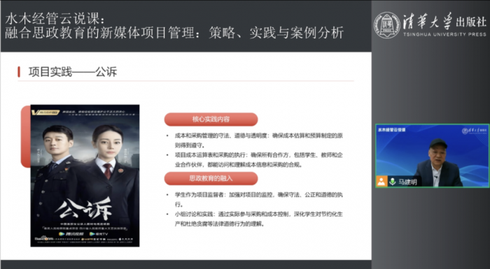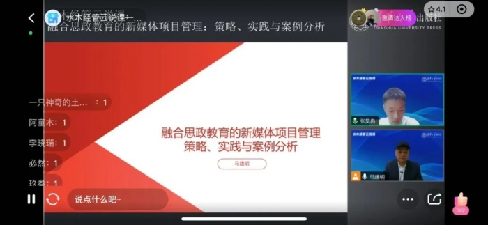 4月23日晚19:00,四川传媒学院数字媒体与创意设计学院马建明教授在清华大学知名新媒体论坛《水木经管云说课》平台,以“融合思政教育的新媒体项目管理:策略、实践与案例分析”为主题进行了一场精彩的直播分享。