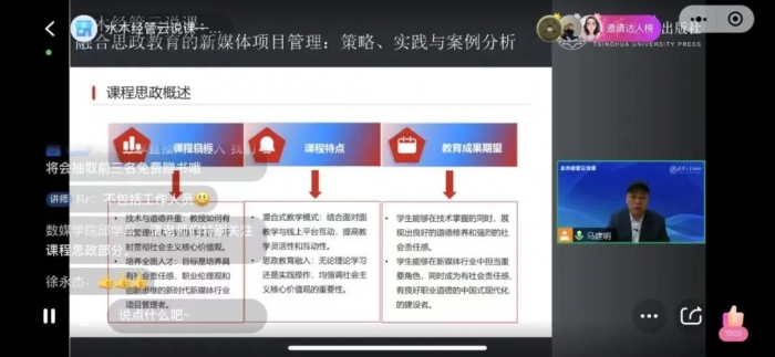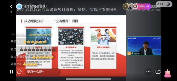 直播过程中,马建明教授与观众进行了积极的互动,分享了更多关于融合思政教育的新媒体项目管理的经验和心得。