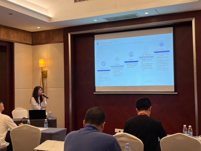会议中,四川传媒学院教师代表雷茜涵就“Exploring the Pathways to Optimize Immersive Imaging Experiences Using AIGC Technology”为主题做了学术报告。该研究围绕四川传媒学院虚拟现实视听技术创新与应用国家广播电视总局实验室的实验项目,通过实验评估了不同群体的沉浸式体验现状,并识别了现存的问题。研究报告详细探讨了AIGC技术在提升视觉效果、演员表现及个体适应性方面的潜力,并提出了一系列基于AIGC技术的优化策略,旨在推动沉浸式超高清虚拟现实技术的发展和应用。