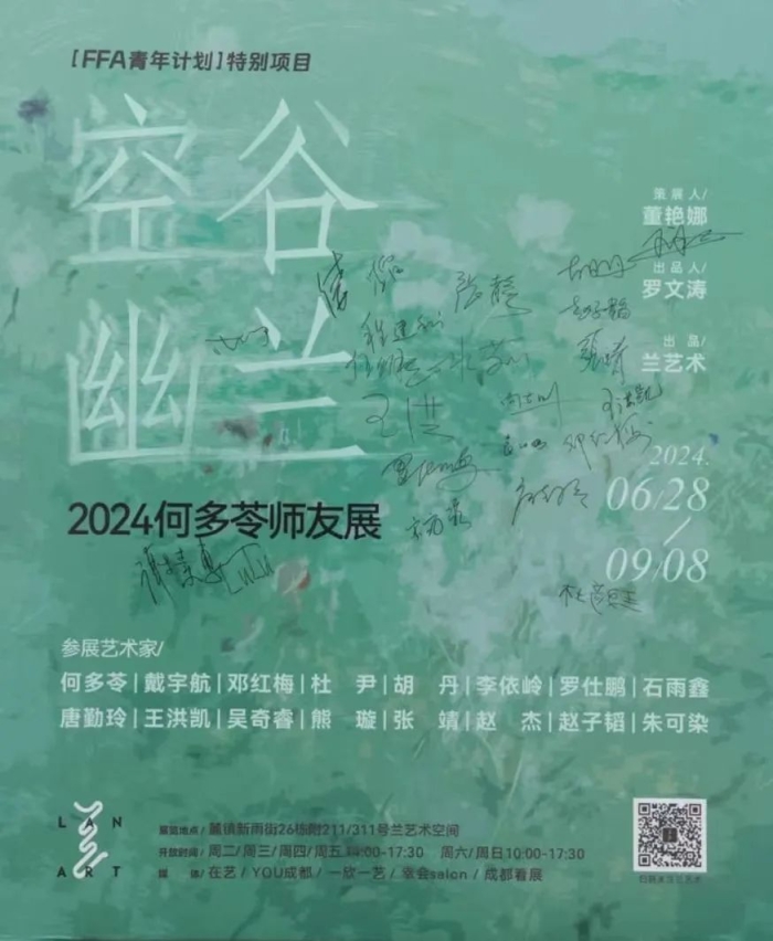 2024年6月28日,成都市双流区兰艺术空间举办了“空谷幽兰——2024何多苓师友展”。本次画展由我国著名艺术家何多苓先生主导,特邀数媒教师戴宇航先生作为主要参展者。同时邀请我院章兵、陈晨、陈依婷、郑卓玲、伍佳臻、段兴阳等多名教师作为嘉宾出席。