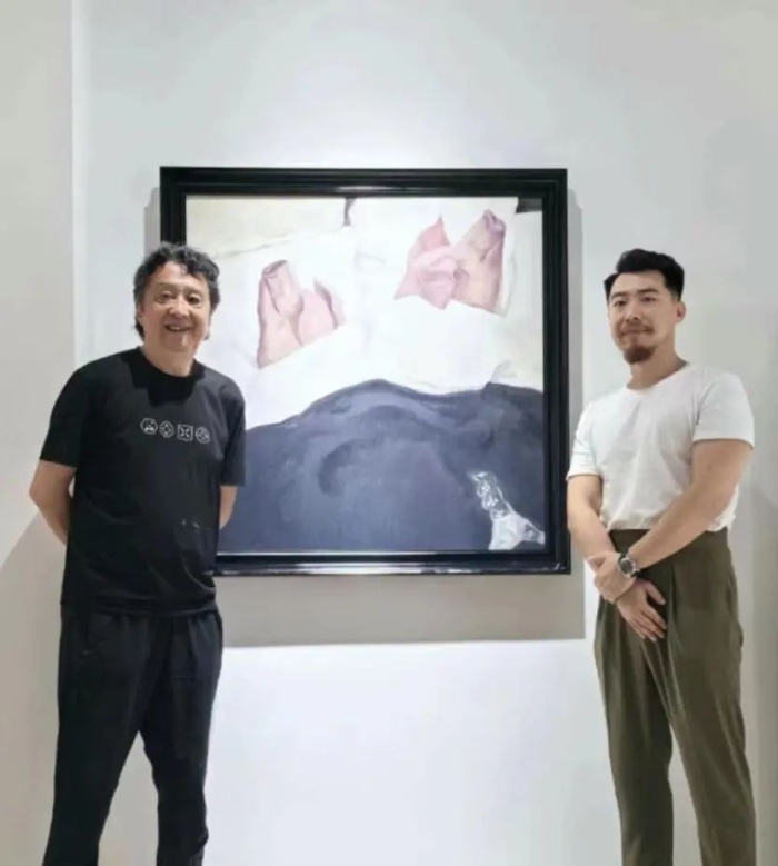 何多苓先生与戴宇航老师在作品《共眠》前合影