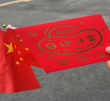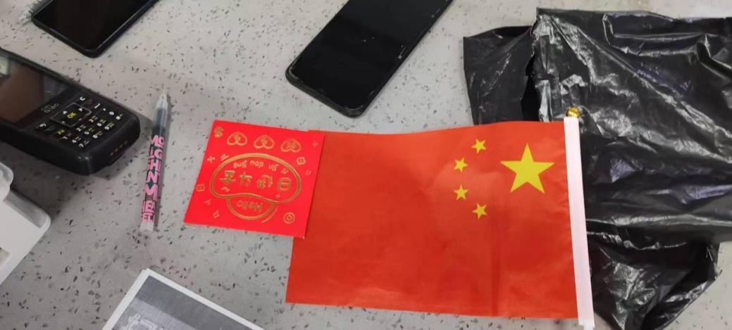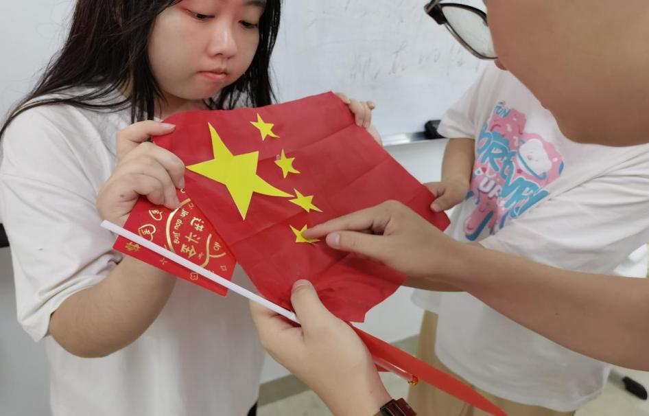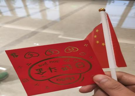 每找到一个红包,学生们都需用手中的红旗作为交换,并拍摄照片留念。与此同时同学们惊喜的发现,每一个红包中都有国旗的一部分,大家从四面八方赶回教室,拼出一面五星红旗。这一环节不仅增加了活动的趣味性,也让学生们在轻松愉快的氛围中增加了团结意识,认识到集体的努力更能谱写崭新的篇章。