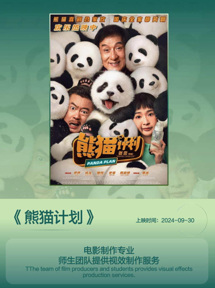 2024年9月30日,国庆档迎来了一部备受瞩目的电影《熊猫计划》。四川传媒学院数字媒体与创意设计学院电影制作专业张立伟老师担任其后期制作总监。这不仅是对张老师个人专业能力的极高认可,更是我院电影制作专业教师团队卓越才华与深厚底蕴的展现。