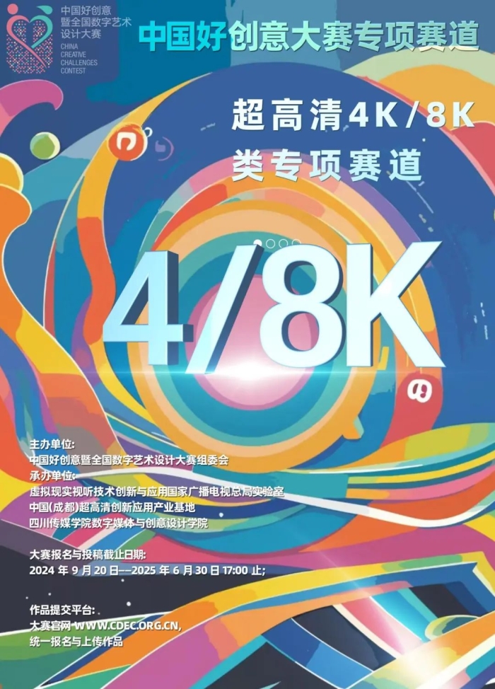 今年,数字媒体与创意设计学院的新媒体艺术、数字媒体艺术等专业师生全力投入到“超高清4K/8K类专项大赛丨第19届中国好创意大赛”的筹备工作中。本次大赛由虚拟现实视听技术创新与应用国家广播电视总局实验室、中国(成都)超高清创新应用产业基地以及四川传媒学院数字媒体与创意设计学院联合承办,旨在推动超高清视频技术的发展与创新应用。该专项赛道紧扣超高清4K/8K摄影作品及超高清4K/8K创新与运用两大核心领域,与数字媒体与创意设计学院的课程建设及学科群发展需求高度契合,充分体现了学院专业建设过程中立足四川、辐射全国的发展理念。![]()