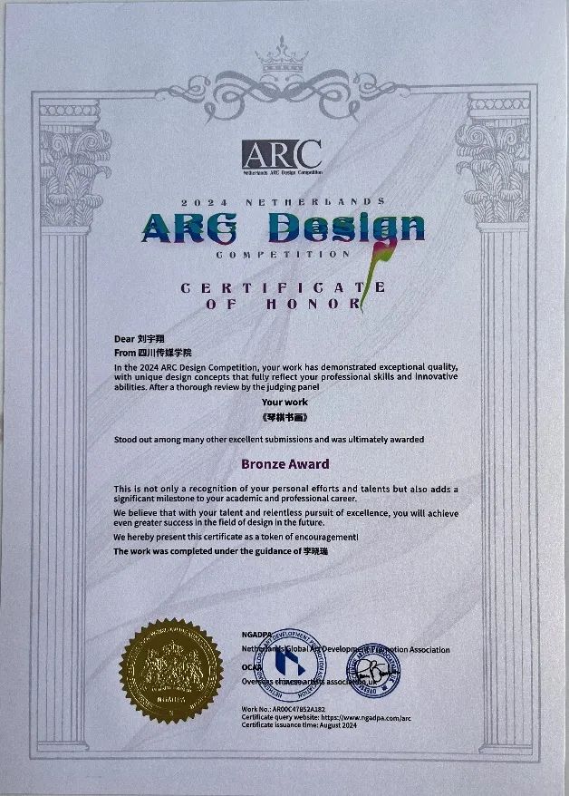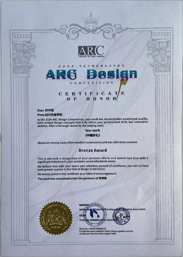 川传数媒学院学子刘宇翔作品荣获2024荷兰ARC设计大赛铜奖