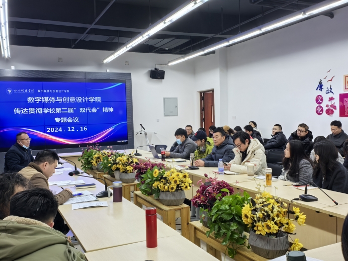 12 月 16 日,数字媒体与创意设计学院成功召开传达贯彻第二届 “双代会” 精神专题会议,旨在深入学习领会学校发展战略,凝聚全院力量,推动学院与学校共同迈向高质量发展的新征程。