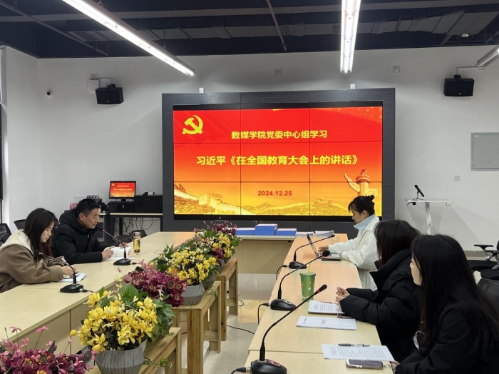 为深刻领会习近平总书记在全国教育大会上的重要讲话及指示精神的丰富内涵,推动广大师生坚定理想信念,增强责任感和使命感,朝着建成教育强国战略目标扎实迈进,2024年12月25日上午11:00,在科创大楼会议室召开数字媒体与创意设计学院分党委中心组学习会议。