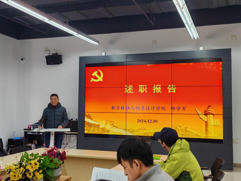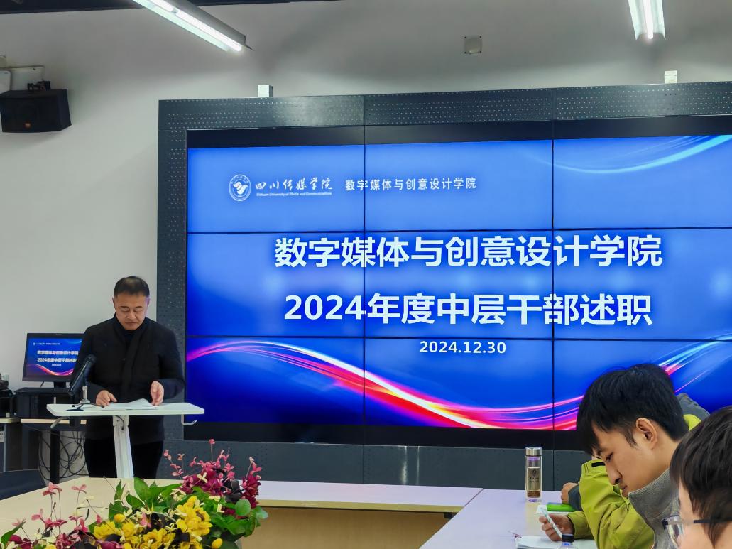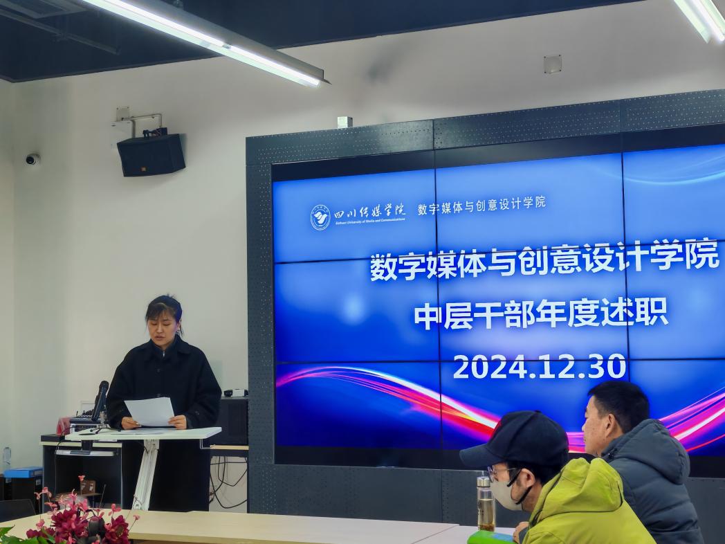 12月30日,数字媒体与创意设计学院(简称“数媒学院”)在学院会议室举行了2024年中层干部述职会议。此次会议旨在全面总结过去一年的工作成效,明确未来的发展方向和工作重点。学院管理团队、各专业主任及教研室主任参会。