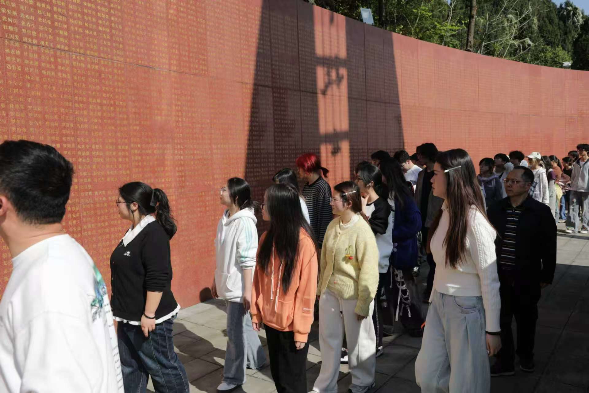 缅怀仪式结束后,在讲解员的带领下,大家循着红色足迹认真聆听,深入了解红四方面军进驻阆中的革命历程,重温革命先辈浴血奋战、无畏牺牲的峥嵘岁月。面对纪念馆中烈士名录墙上密密麻麻的英名,学子们驻足凝视、静心感悟,深刻体会先烈们忠诚于党、无私奉献的崇高精神。